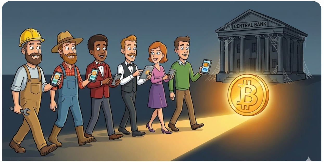 Those who wish to continue living independently and not relinquish their right to vote choose direct democracy and thus Bitcoin as their monetary system. Those who want to relinquish personal responsibility and their voting rights to a representative, which is easier for many, choose the fiat money system.